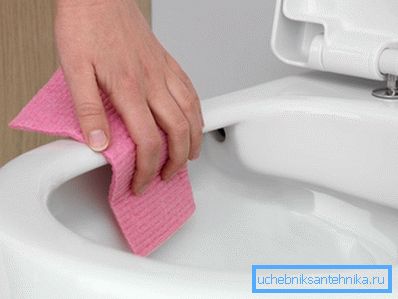 - Поверхность подвергается чистке унитаза ершиком, и химическому действию чистящих средств с применением абразивных порошков и агрессивных веществ.