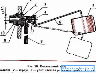 - Поплавок - подсоединяется к мембране посредством определенных рычагов.
