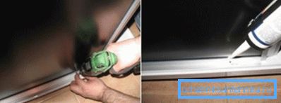 - Заводим стеклянные элементы в U-образный профиль, который после этого скрепляется шурупами.