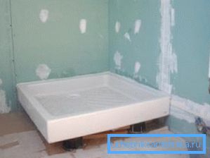 - Монтаж начинается с установки поддона. Прежде, чем осуществить установку, нужно проверить пара моментов: угол стыковки пола и стен должен быть прямым, другими словами, равным 90 градусов; края поддона должны прилегать к поверхности стен максимально хорошо; раструб канализационной трубы должен совпадать со сливом в поддоне.