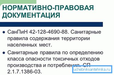При устройстве выгребных ям направляться придерживаться и санитарных норм, каковые установлены в пункте 2.3 СанПиН 42-128-4690-88. «Санитарные правила содержания территорий населенных мест».