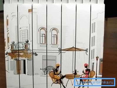 - Декупаж. Обычные салфетки и клей ПВА – еще один метод декорирования отопительного элемента. Данную работу возможно произвести своими руками, да и особых навыков и дорогостоящего материала не потребуется. Необходимо салфетки подходящего цвета, вырезать из них пара нужных элементов и обклеить ими прибор. Поверх декора направляться нанести пара слоев особого термостойкого лака.