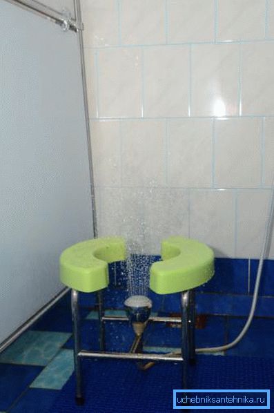 - Струя воды направляется в промежность больного, благодаря чего выясняется интенсивное действие на область малого таза.
