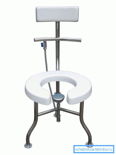- Больного усаживают на особый стул. В большинстве случаев, сидение для того чтобы стула изготавливается из эластичных влагостойких материалов и оснащается отверстием в центре.